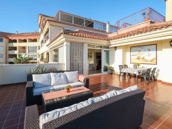 ¡Oportunidad única! Lo que destaca en esta propiedad es sin duda su increíble terraza de más de 100m2 y unas vistas panorámicas inmejorables. Este ático de 70m2 se distribuye en un salón, una cocina abierta, dos dormitorios, dos baños y una terraza acristalada con aire acondicionado que además da un espacio extra al salón y sirve a la vez como comedor o espacio para invitados. También dispone de una plaza de garaje subterránea incluida en el precio y un trastero opcional para quien lo desee. El edificio tiene ascensor, piscina comunitaria y está situado en la parte baja de Los Pacos. La zona ofrece todos los servicios diarios como supermercados, cafeterías, restaurantes, parada de autobús, varios parques y zonas deportivas, colegios y mucho más. A sólo un kilómetro de la playa.