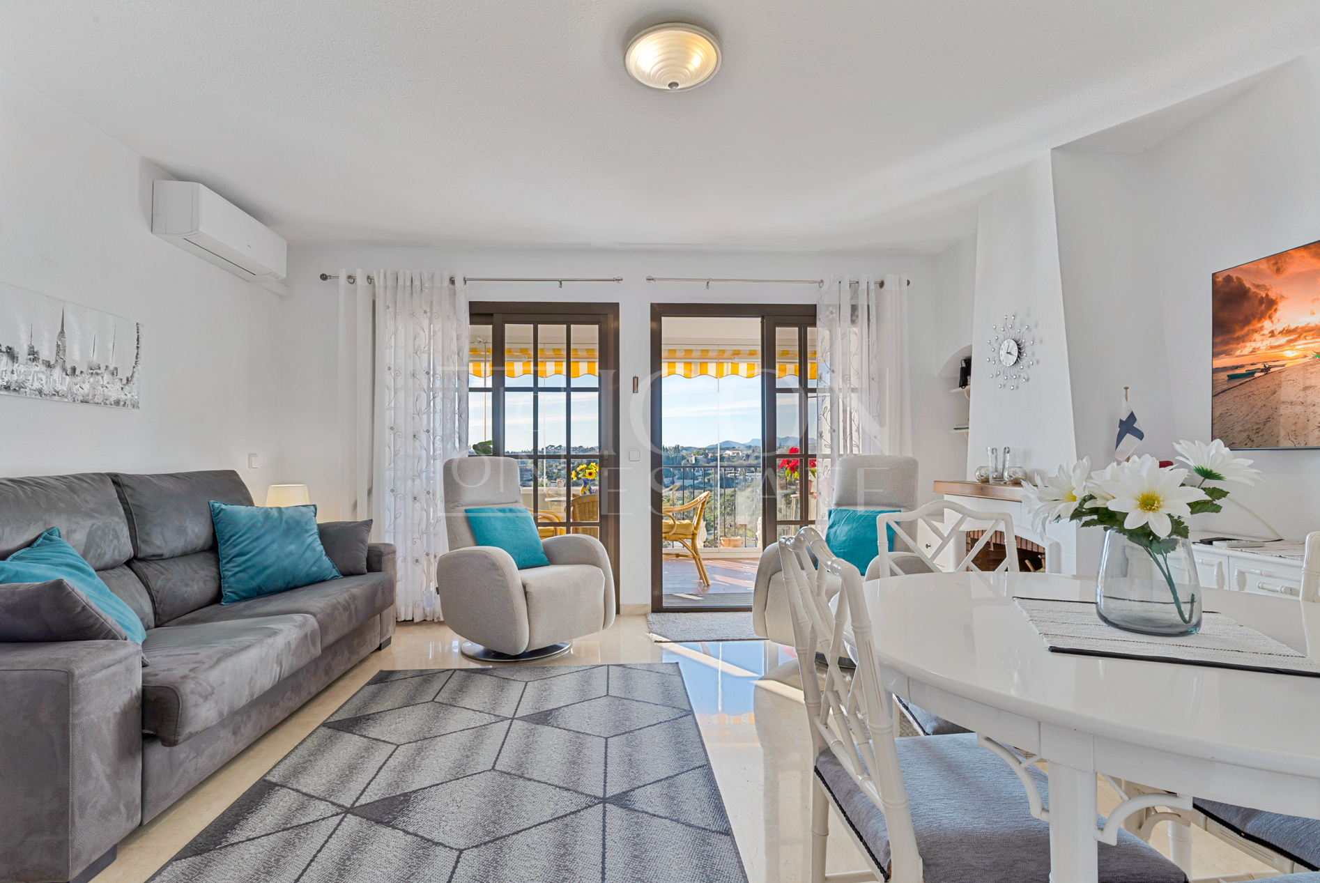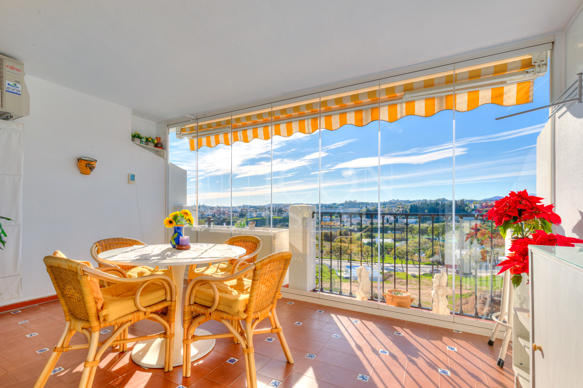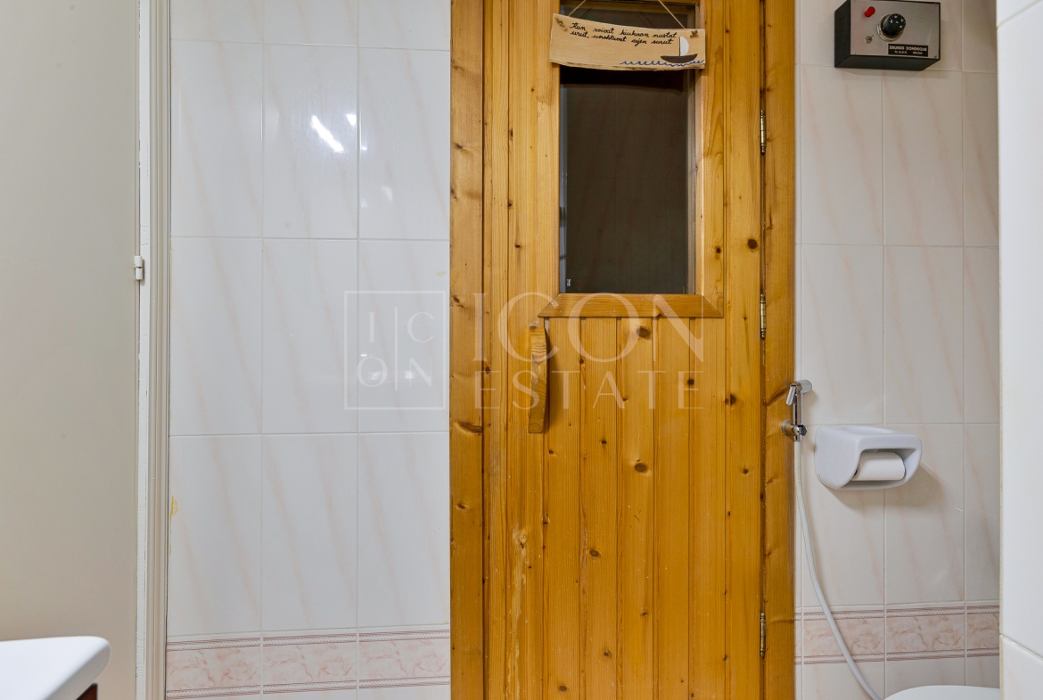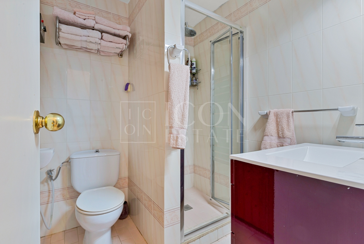 El piso incluye baño completo, sauna finlandesa, armarios empotrados, aire acondicionado y calefacción por bomba de frío/calor, además de doble acristalamiento en el dormitorio, garantizando confort y eficiencia.