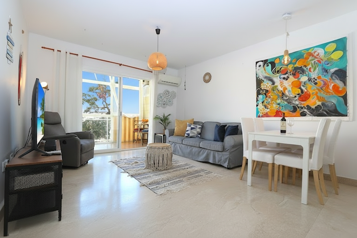 Don’t miss this opportunity to acquire a 76m² apartment in a prime location! With two cozy bedrooms and a full bathroom with a bathtub, this property boasts a spacious living room with an open-plan kitchen, perfect for enjoying time with family and friends. You can also relax on the 20m² enclosed terrace, or even convert part of it into an office if you work from home. The property is in its original, well-maintained condition, with marble floors that add a touch of elegance and air conditioning in the living room, ensuring a comfortable temperature year-round. The building features two elevators, a swimming pool, and communal areas. And that’s not all! It also includes a parking space. Monthly expenses are reasonable, making this property ideal for investment or as a permanent residence. The property is sold fully furnished and ready to move in.