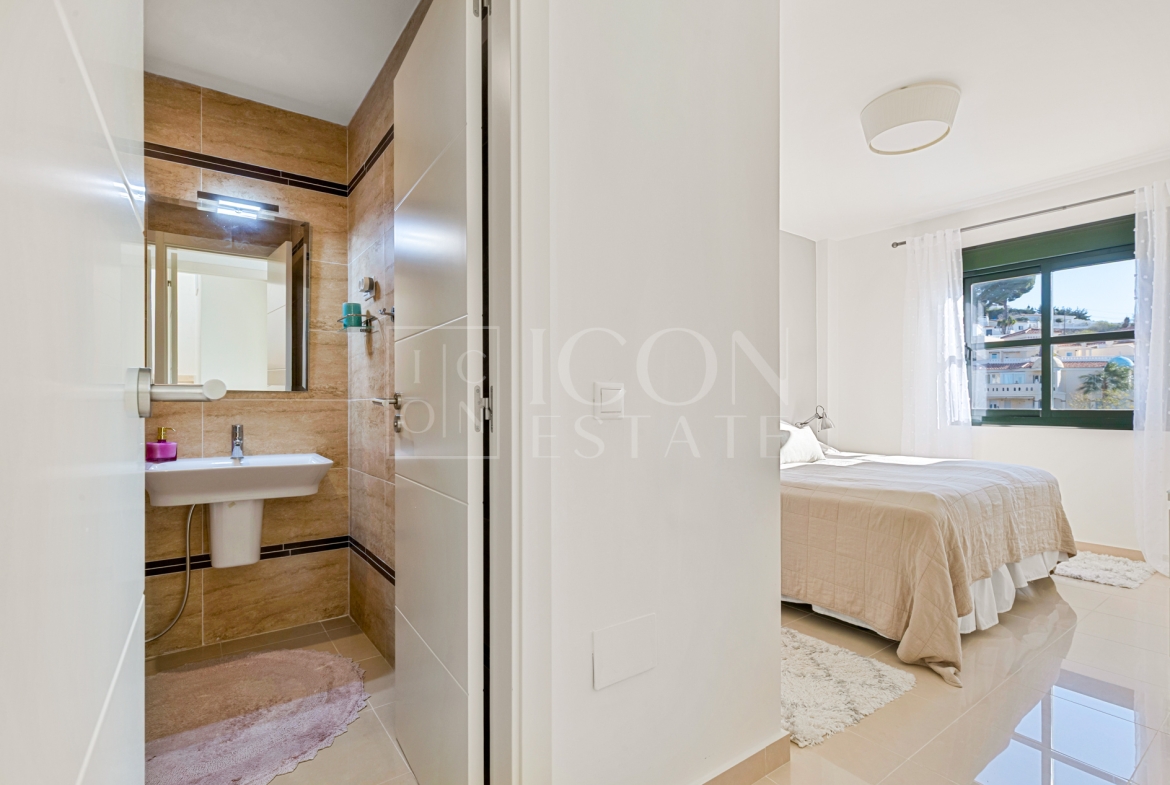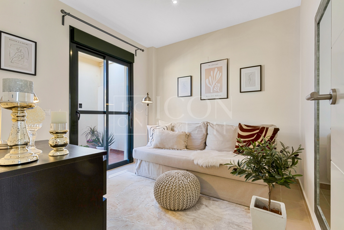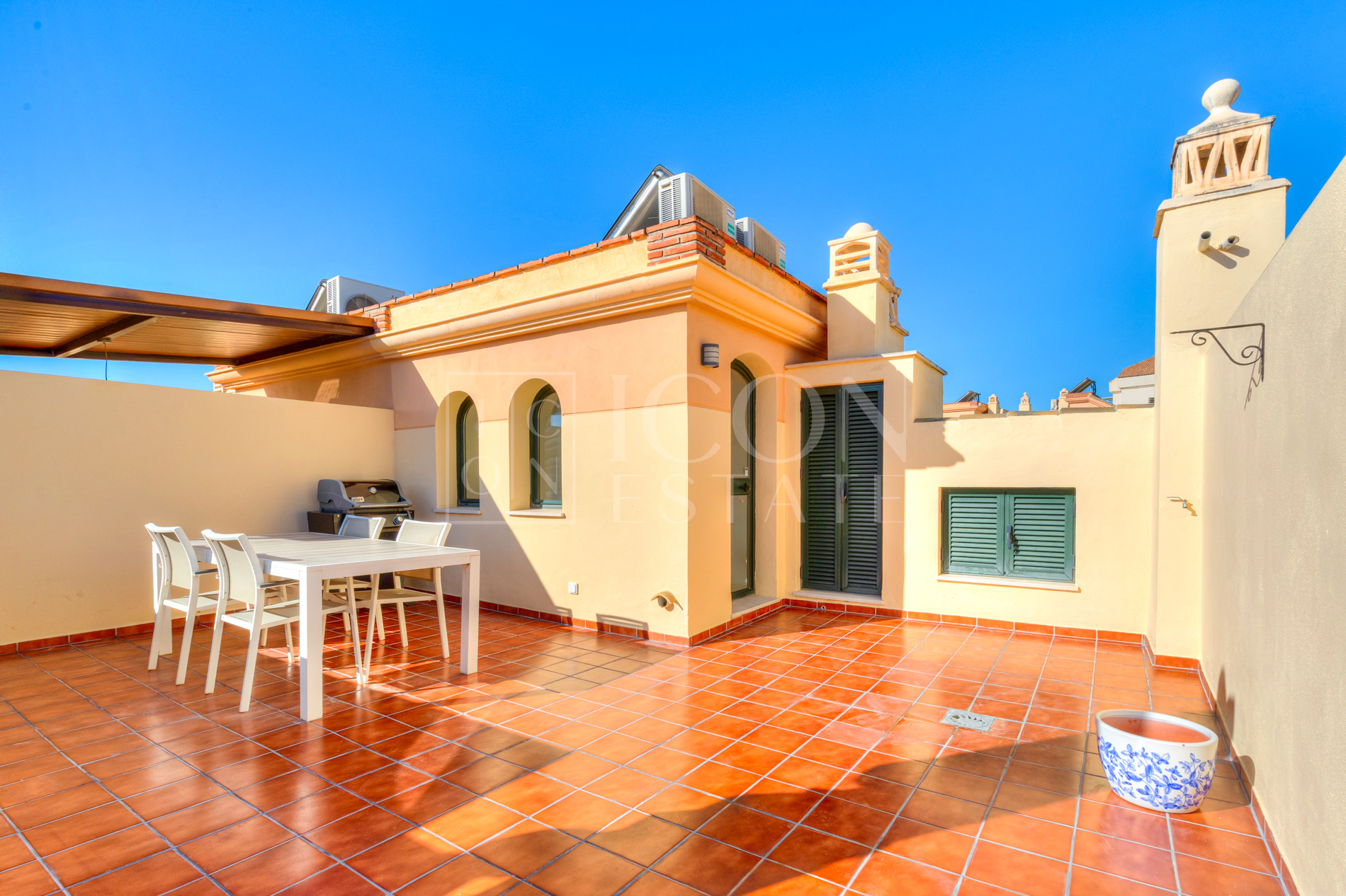Upstairs, there are three generous bedrooms and two full bathrooms, one of them en suite. Two lovely terraces, facing southeast and west, provide excellent opportunities to enjoy the sun at different times of the day.
